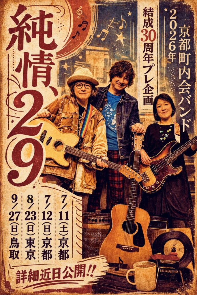 G.&Vo.として参加する京都町内会バンドは、結成25周年を越えて活動中。役者としても数々の舞台の出演し、舞台の音楽も同時に担当。 2014年からは役者としてユニット「はひふのか」を共同主宰。シリーズ舞台として人気を博した「Moonlight Club」は舞台で16作を数え、その後、4本の映画作品となり劇場公開されている。