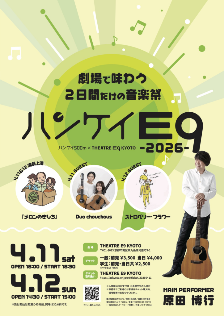 2010年からは毎年、京都市円山公園音楽堂にて「ハラダイスライブ」を開催。原田博行たった1人が舞台で歌う野外フェスは、京都中の店舗や企業を巻き込んで行われ、コロナによって断念するまで10年間、毎年800人におよぶ動員を続けた。