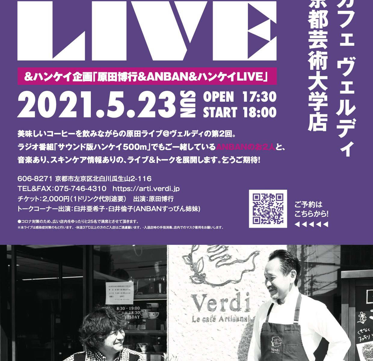 美味しいコーヒーを飲みながらの原田ライブ@ヴェルディの第二回は、ANBANさんとのコラボ。ラジオ番組「サウンド版ハンケイ500m」でもご一緒しているANBANのお二人に登場してもい、音楽あり、スキンケア情報ありの、ライブ&トークを展開します。乞うご期待!