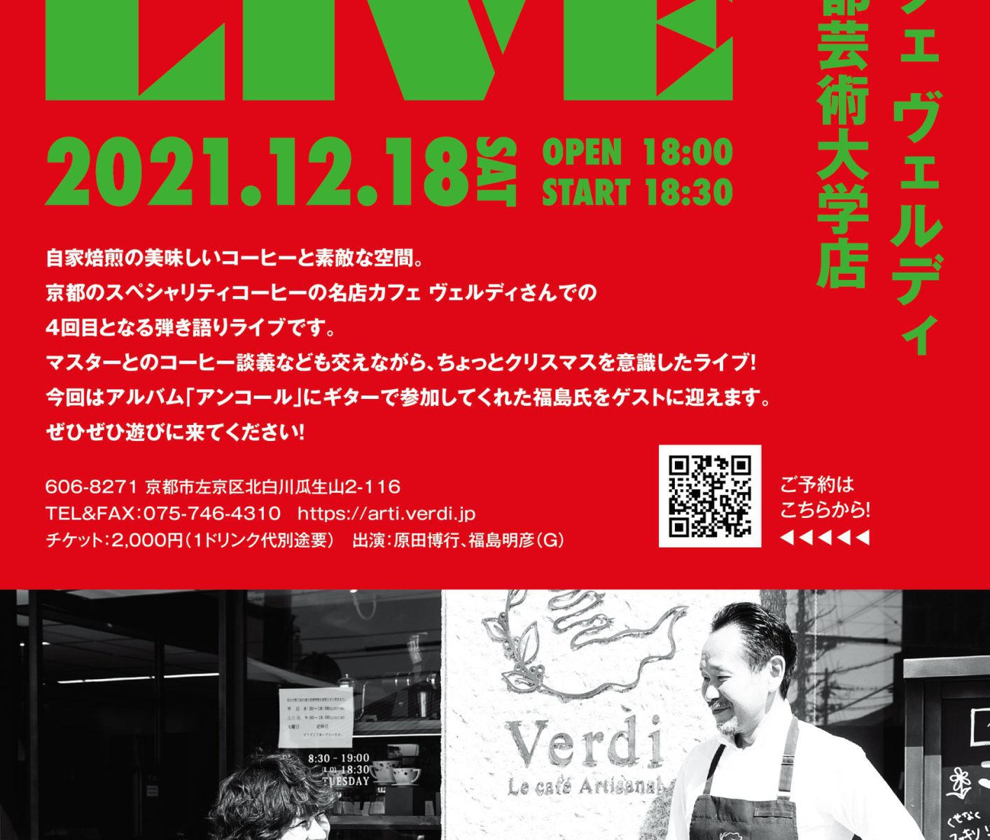 原田博行ライブ@カフェ ヴェルディ 京都芸術大学店