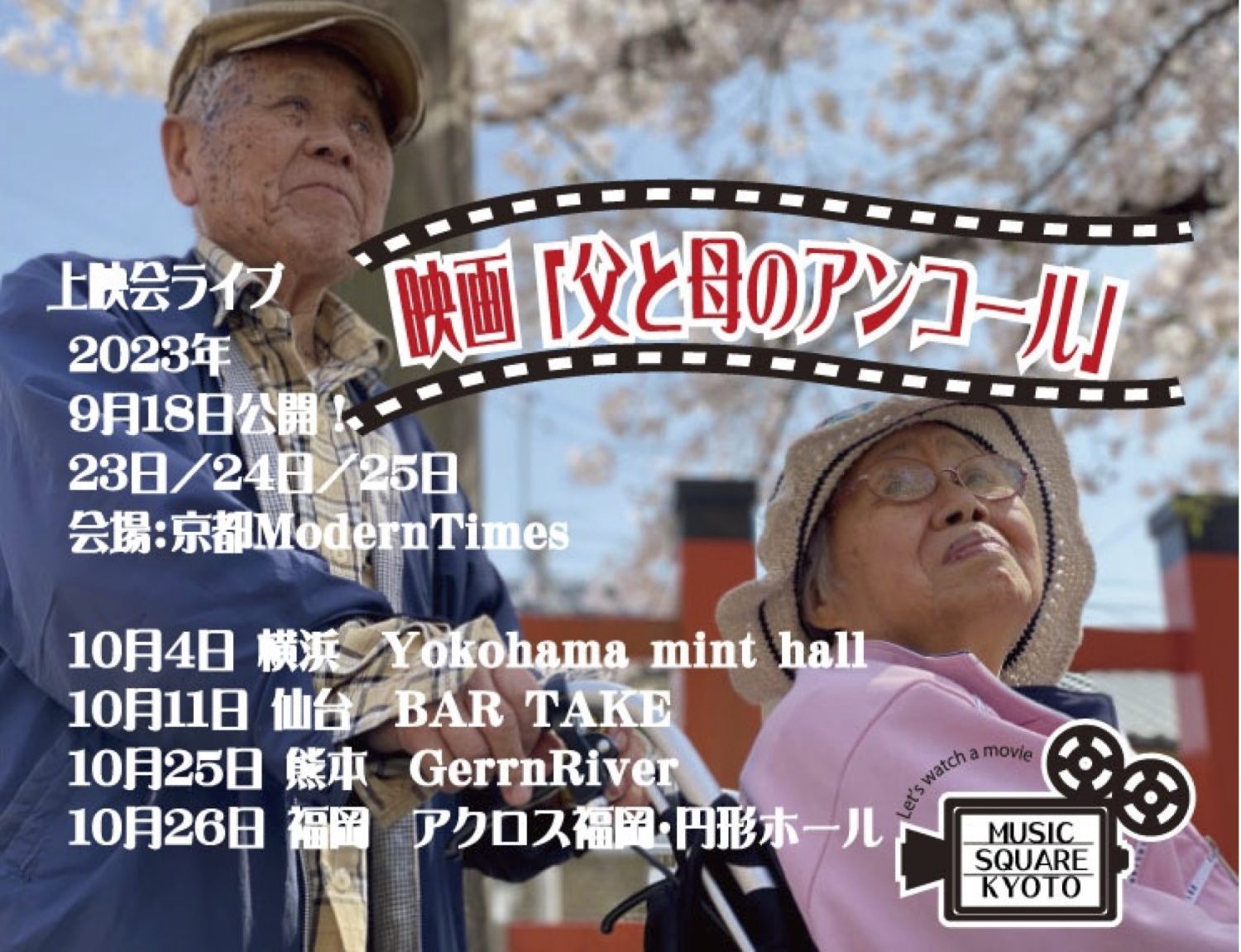 京都のライブハウスモダンタイムスの店長角口裕美(ヒロさん)が監督したドキュメンタリー映画「父と母のアンコール」の上映会と原田ソロライブ。
