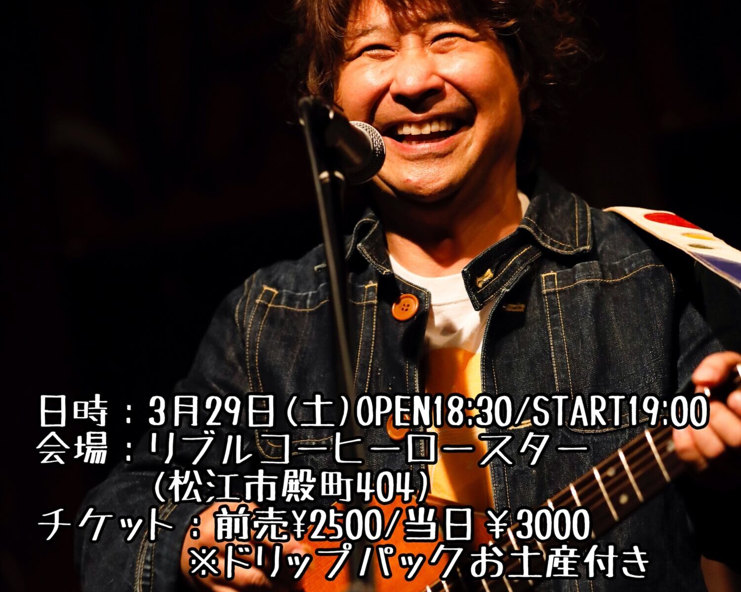 3月29日原田ライブ予約と明記の上、代表者お名前と人数をお知らせください。15人限定の生声ワンマンライブです。ご予約お早めに!
