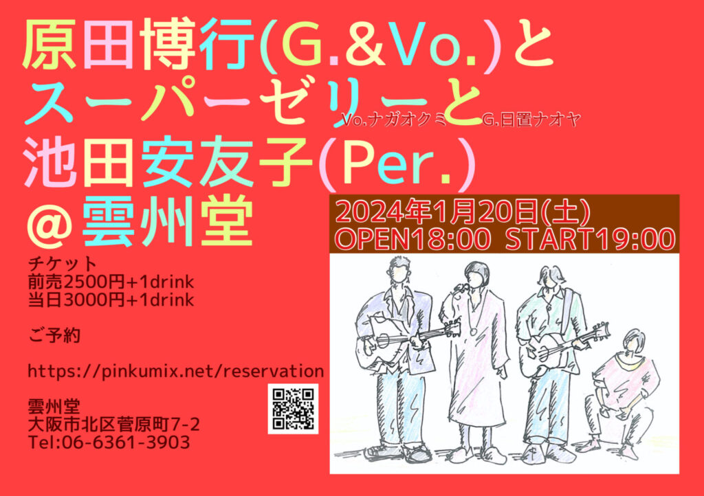 毎週金曜日に発行のメルマガに掲載している最新情報の詳細です! いよいよ大阪ライブ。今週土曜日! 【大阪・雲州堂】 原田博行とスーパーゼリーと池田安友子@雲州堂 久しぶりに4人でやります!基本はスーパー