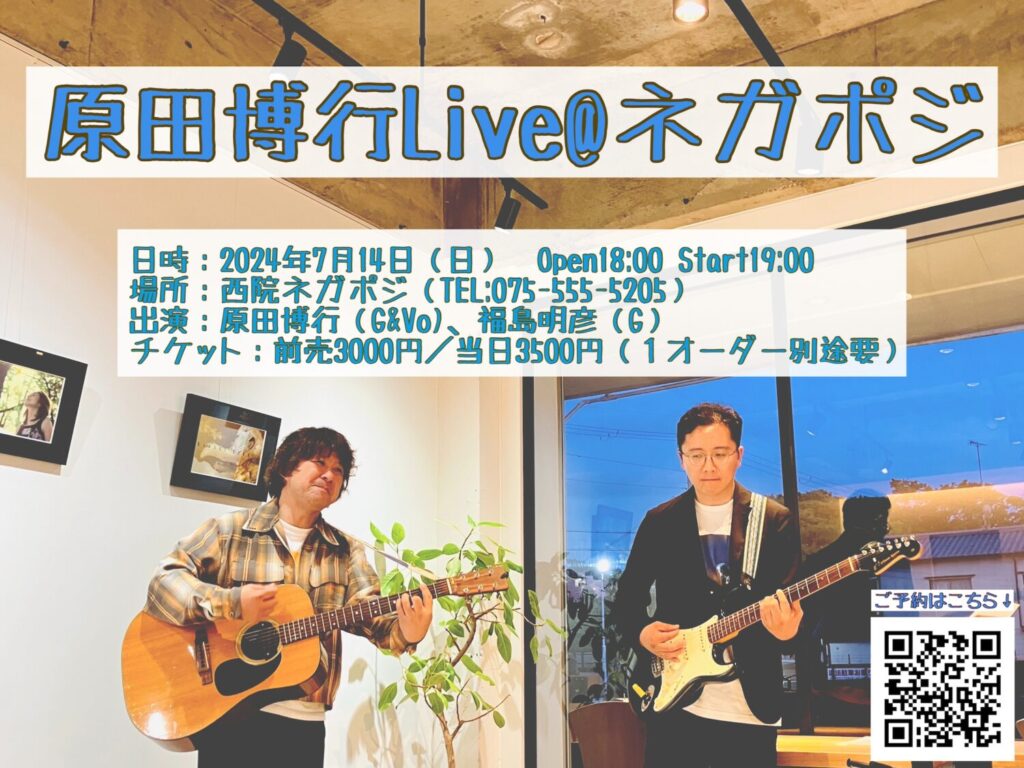 毎週金曜日に発行のメルマガに掲載している最新情報の詳細です! 日曜日は京都、水曜日は東京で!!ワンマンライブです! 【京都・ネガポジ】 京都・ネガポジ「原田博行ワンマンライブ」 日時:2024年7月1