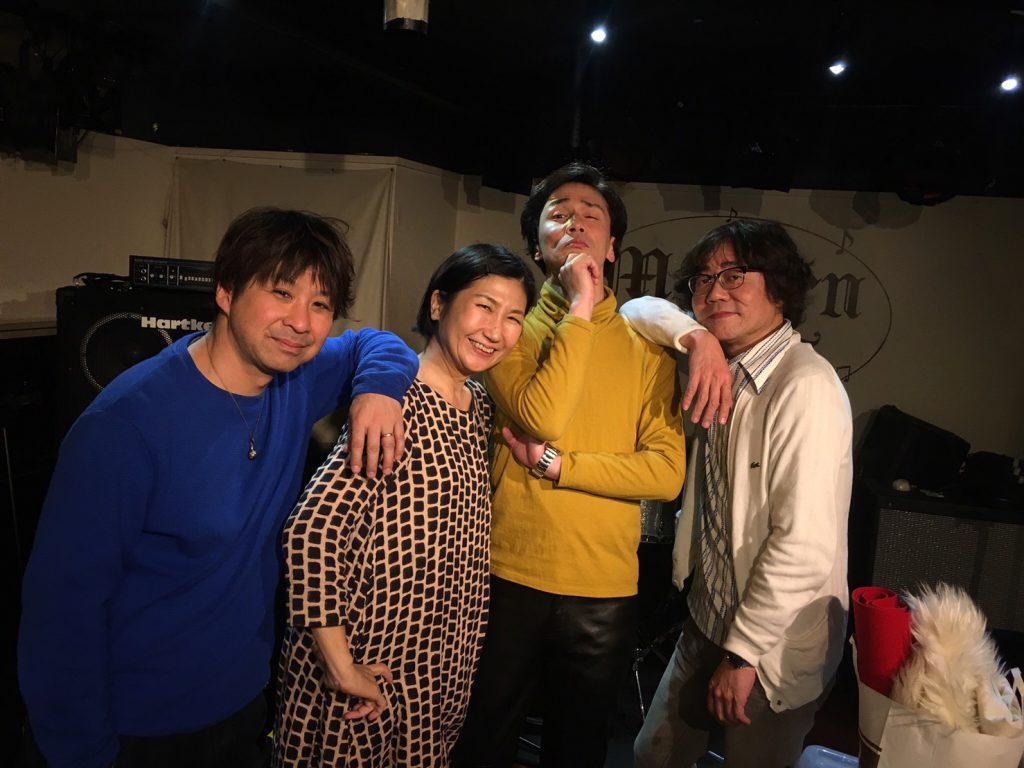 大阪、名古屋、東京、そして京都へ。 かなりいい感じでサウンドし始めたこのメンバー。京都のライブがいよいよ楽しみになってきた。スーパーゼリーのクミちゃんと日置くんにパーカッションのあゆちゃんが加わって、