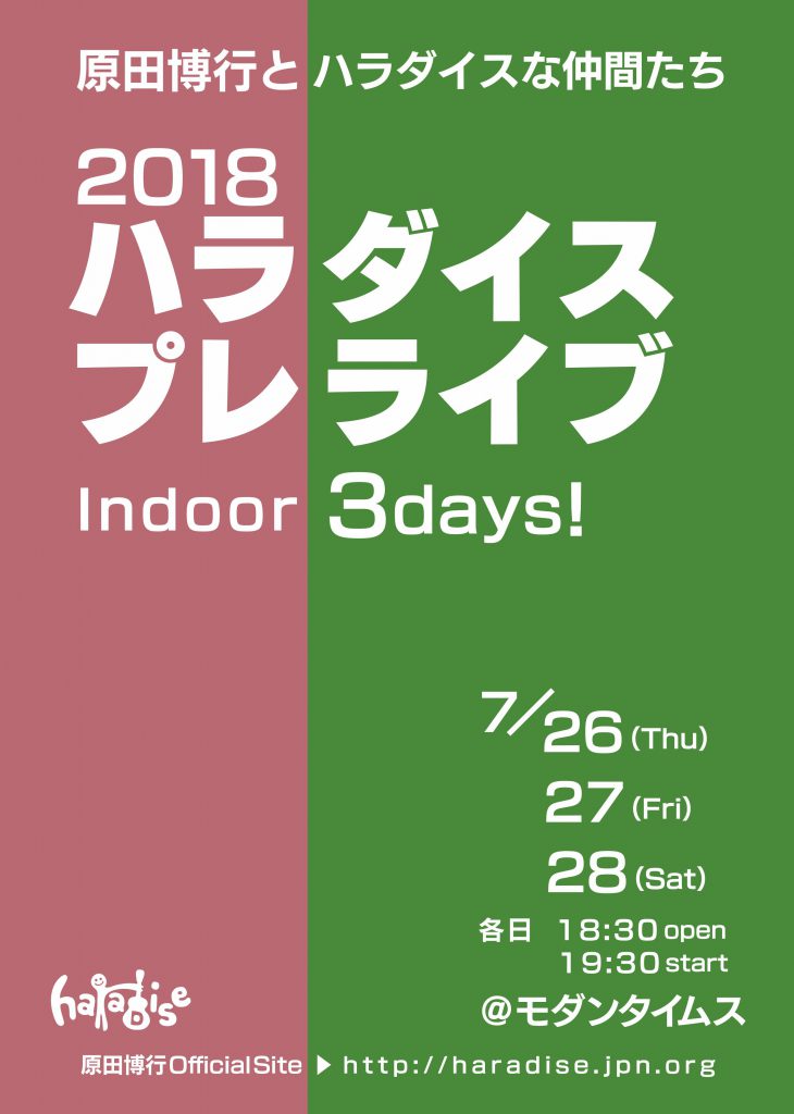 ここ8年のハラダイスでハラダイスTシャツを買って下さったみなさん!朗報です! 7月26、27、28日のハラダイスプレライブ3デイズにハラダイスTシャツでお越しいただくと、ちょっといいこと