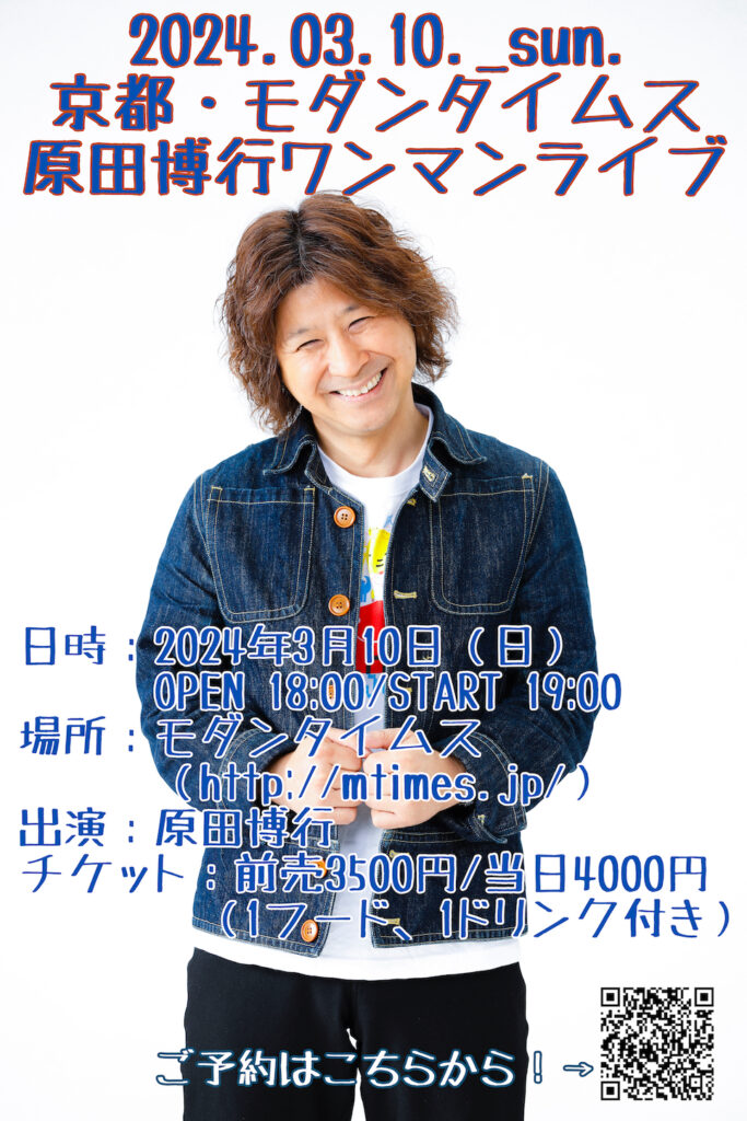 毎週金曜日に発行のメルマガに掲載している最新情報の詳細です! 【原田博行ワンマンライブ@京都・モダンタイムス】 ○京都・モダンタイムス(一人で語り弾き) 日時:2024年6月1日(土)OPEN 18: