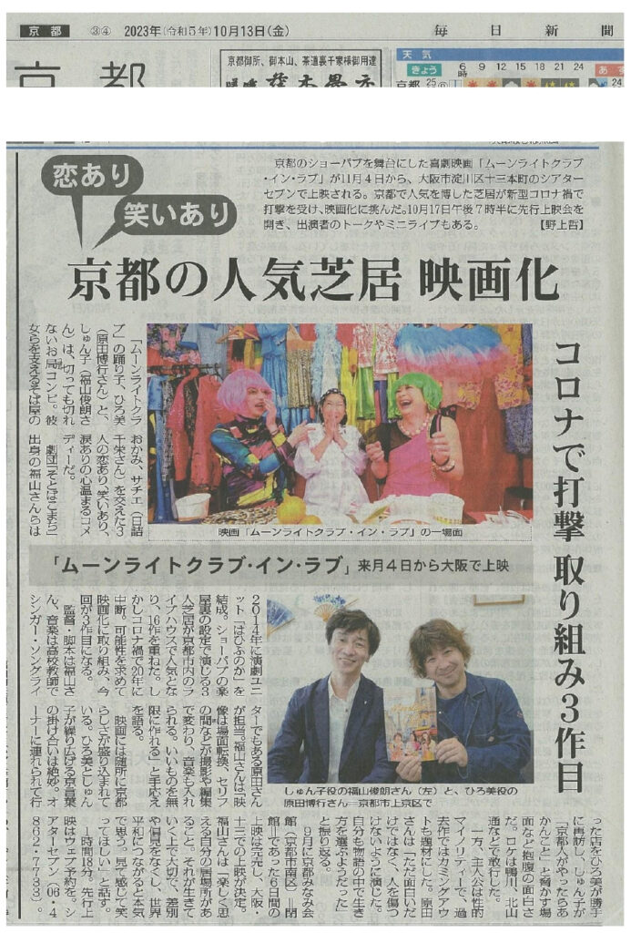 いよいよ11月に1週間の大阪十三での上映が控える映画「Moonlight Club in LOVE」嬉しいことに3社の新聞社に記事にしてもらいました! 上映詳細はこちら https://www.har