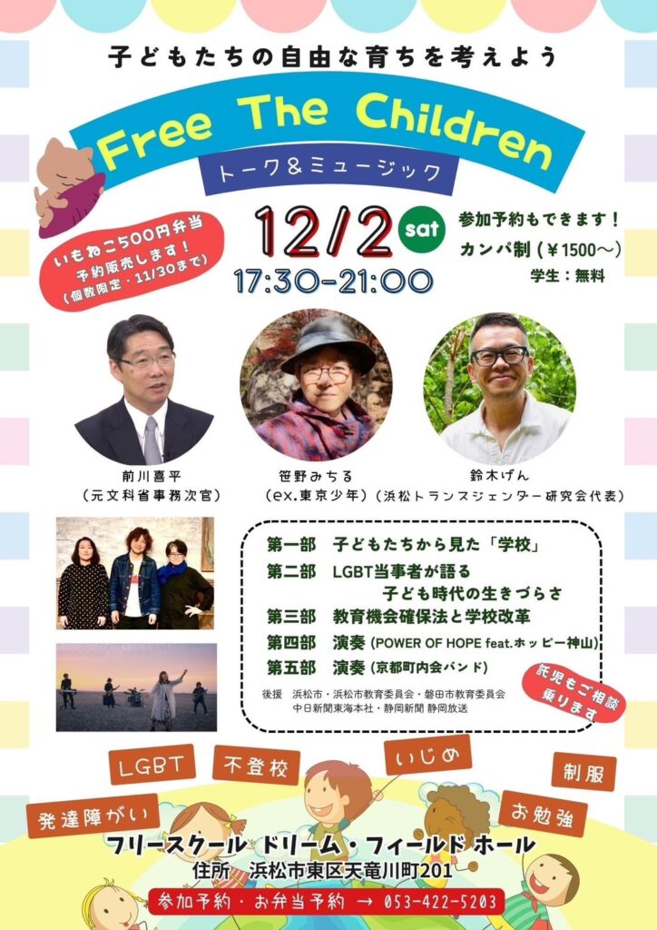 毎週金曜日に発行のメルマガに掲載している最新情報の詳細です! 【京都町内会バンド@浜松】 「Free The Children」トーク&ミュージック 日時:2023年12月2日(土)17:30~21: