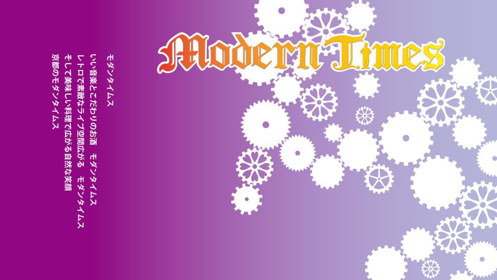 京都木屋町三条にある新しいスタイルのライブハウス&ダイニングレストラン&ウエディング モダンタイムス【Modern Times】 ホームページ 電話番号: 075-212-8385 営業時間: 定休日