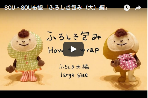 SOU・SOU 布袋 「ふろしき包み」大編 風呂敷の包み方を、短いアニメーションで紹介します。 プレゼントに、インテリアに、普段のちょっとしたものを包む時に... 簡単に可愛く包めちゃいます。 大判の