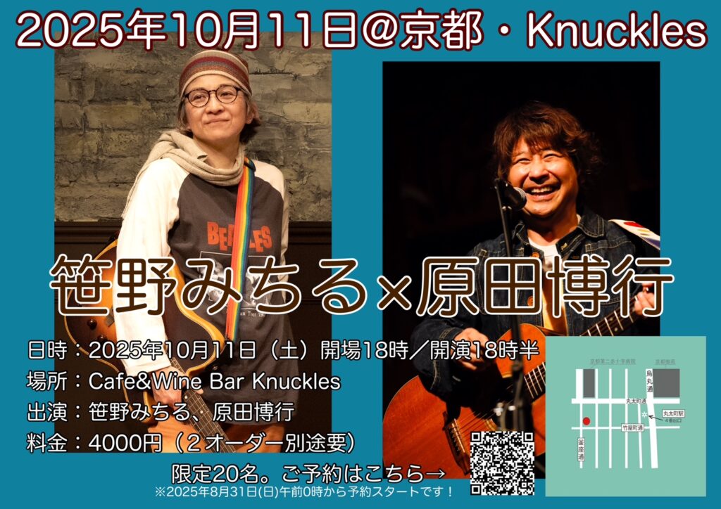 日時:2025年10月11日(土) 開場18時/開演18時半 場所:Cafe&Wine Bar Knuckles https://knuckles-kyoto.com 出演:笹