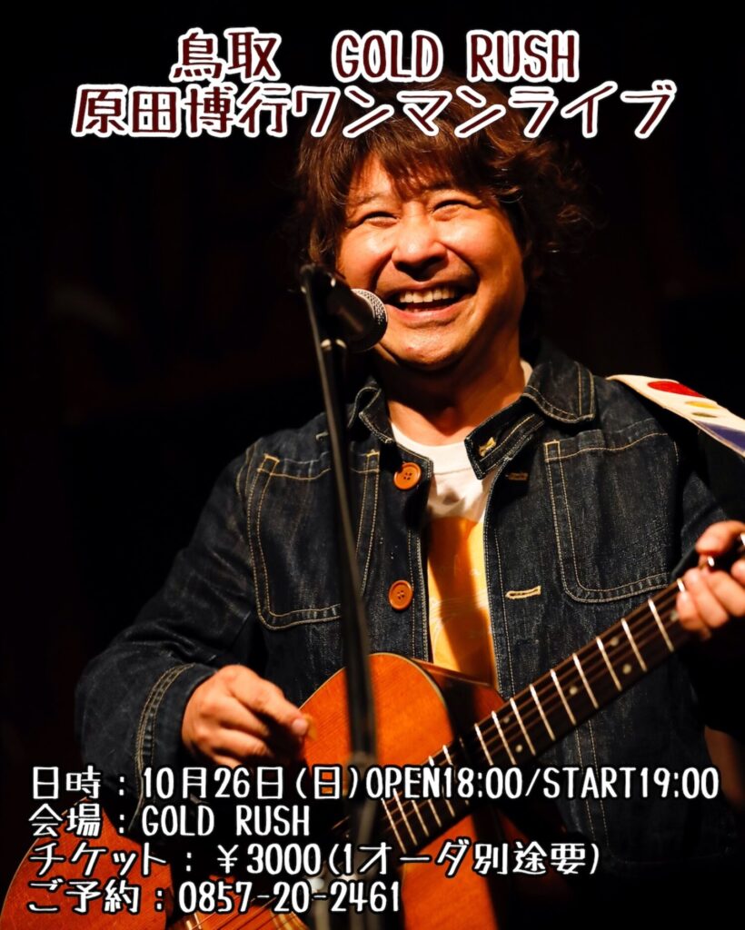 日時:2025年10月26日(日) OPEN18:00/START19:00 会場:Gold rush(鳥取市弥生町178奥村ビル2F) チケット:3000円(別途1drink要) ご予約はお電話で